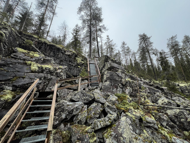 Hiidenportin rotko on todella vaikuttava. Portaat vievät rotkon huipulle ja rotko jatkui paljon pidempänä kuin osasimme odottaa.